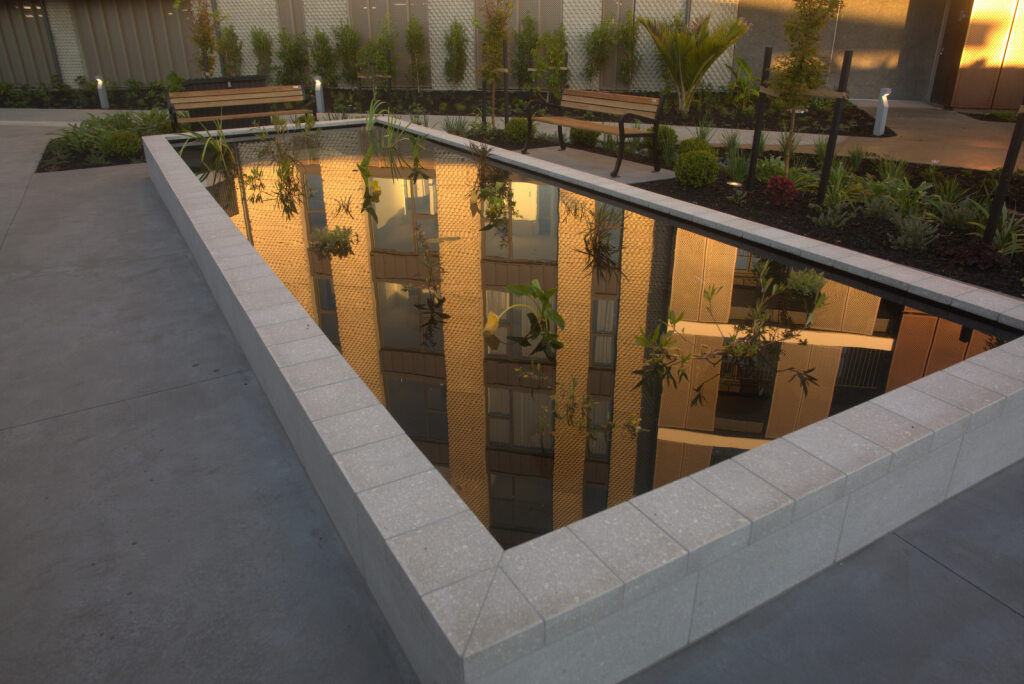 GreensceneNZ Landscapes were briefed to create a luxurious, tranquil public space as an addition to the amenity building café courtyard and the upcoming village green at a prominent retirement village on Gulf Rise in Whangaparoa.